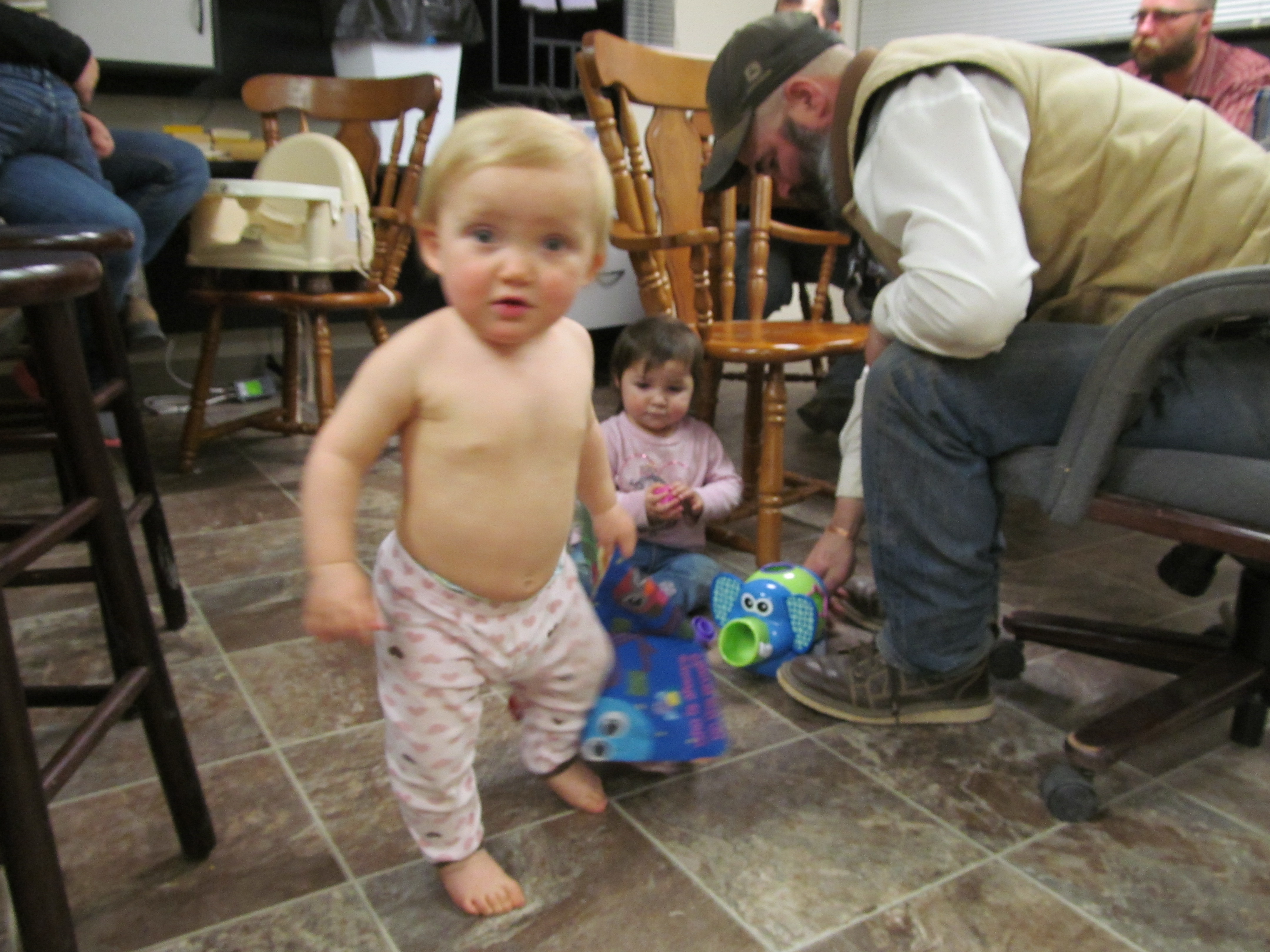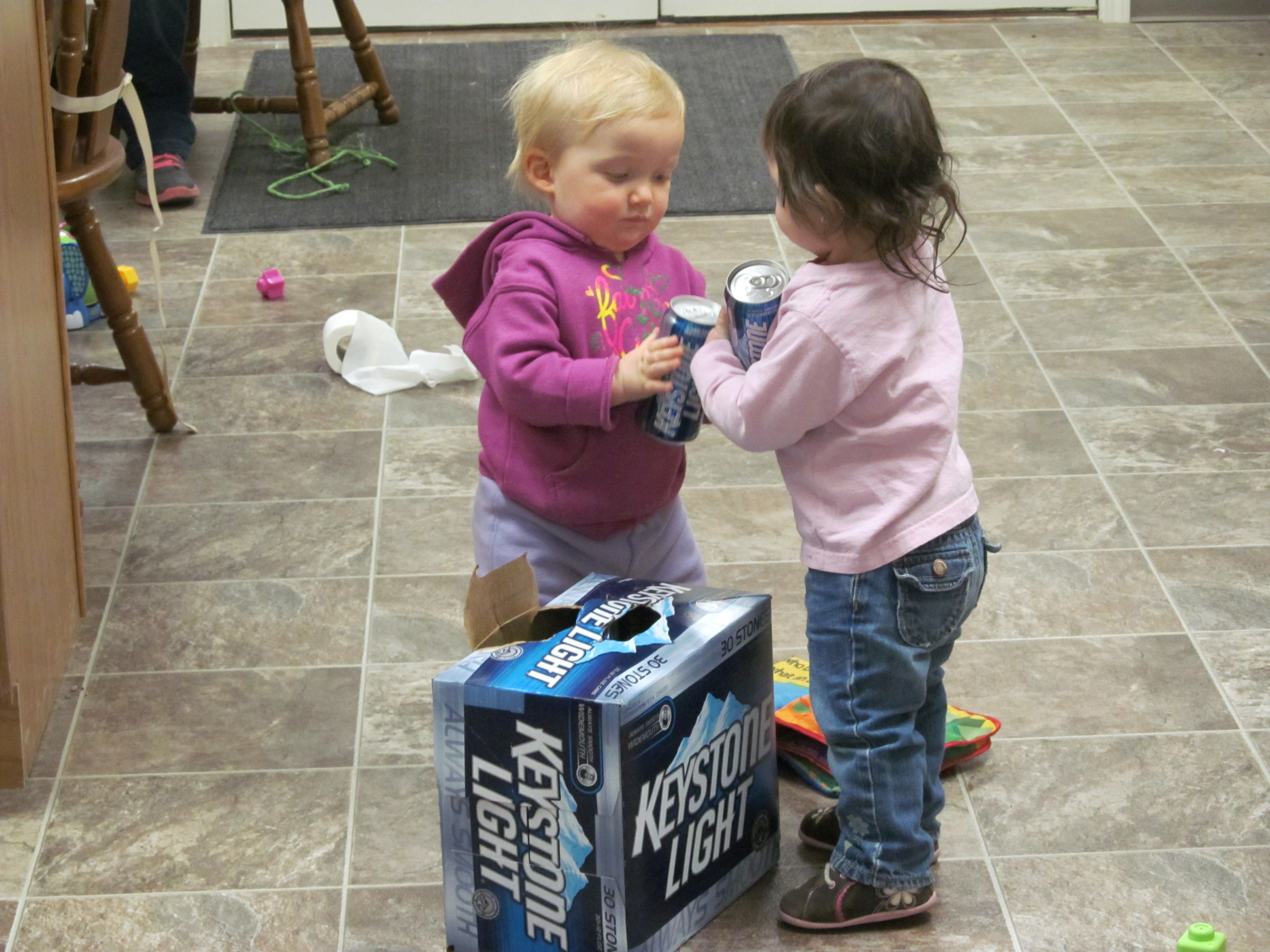 Grace had lots of playtime with other short people, including our friends’ daughter Lena who is two months older than Grace. We let them unpack the beer box for an affordable, safe baby activity. See the toilet paper roll in the background? I also let them TP the bunkhouse. I’m setting them up for a super fun Halloween night one year.