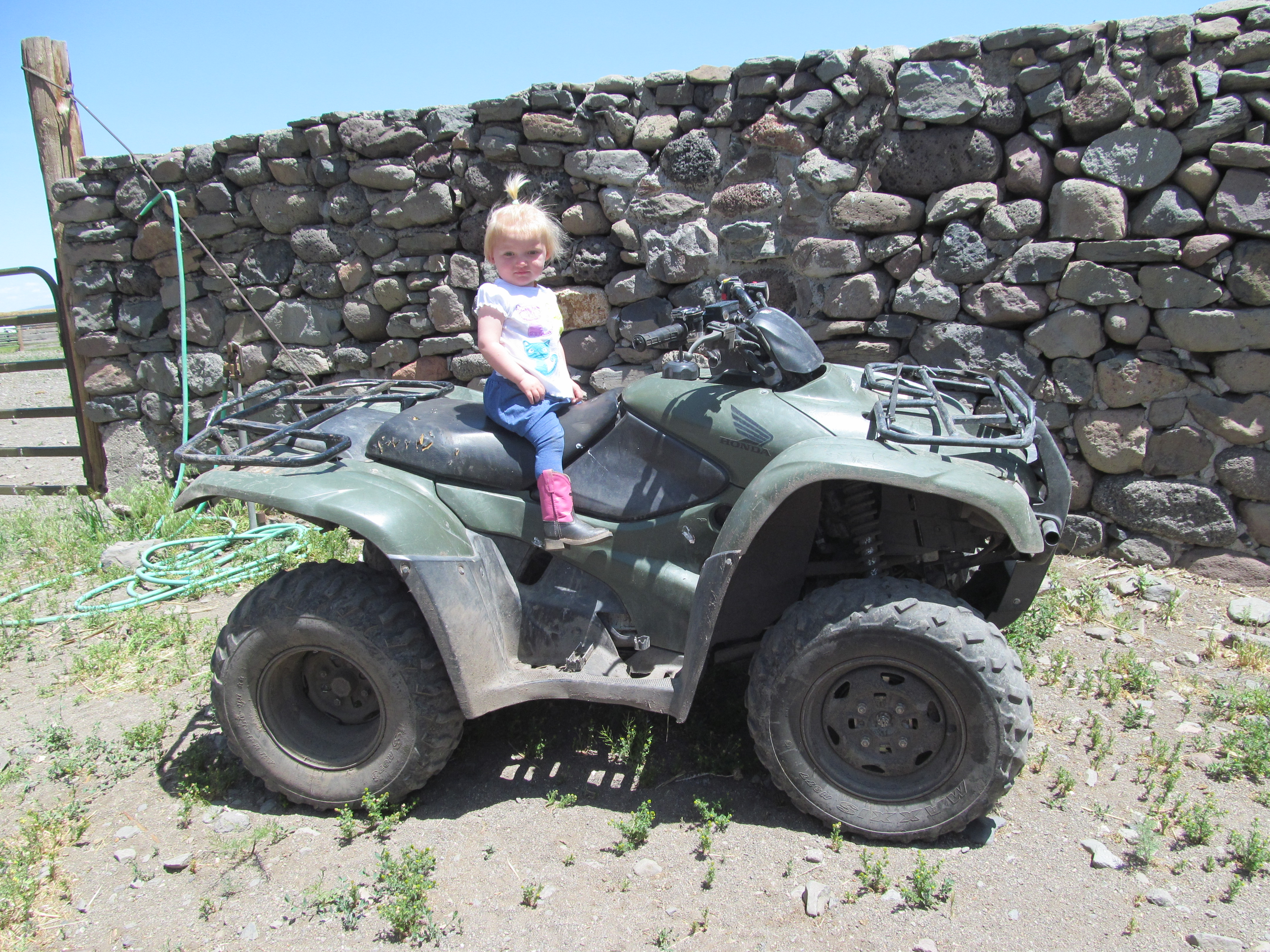 Here’s Grace on the wrangle horse. I know it ain’t very punchy to wrangle on a four-wheeler, but come on, you know you’ve done it, too.