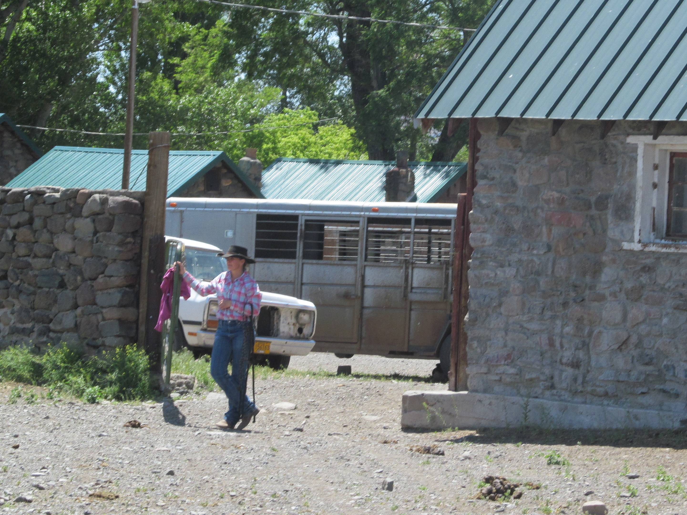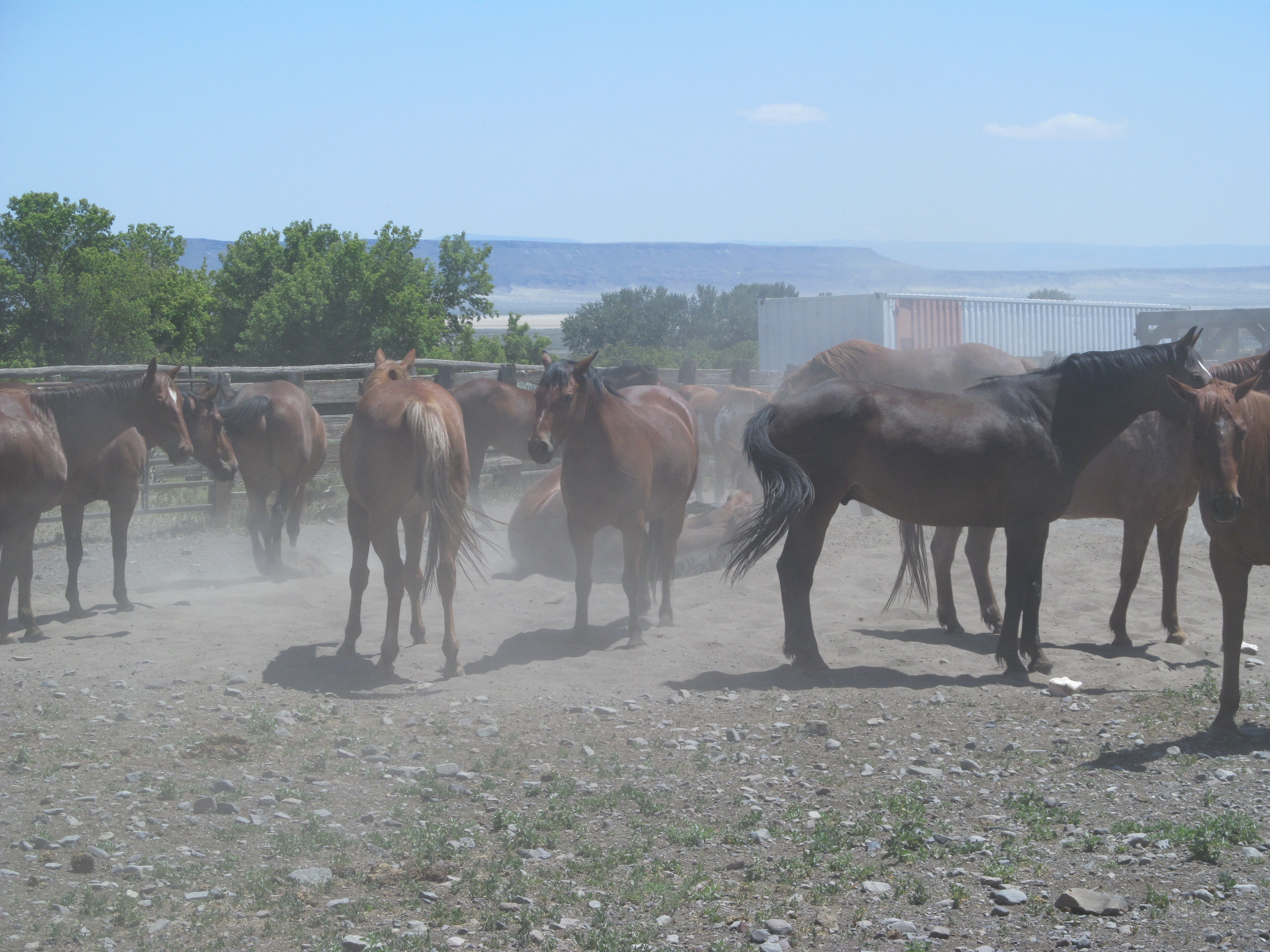 Enough of this rubber neckin’, back to work. Get to the corrals, you horses! Notice how fast they’re not going? That’s what happens when the wrangler won’t shift out of second gear because she doesn’t want to jostle the baby too much and stops every 50 yards to take a picture.